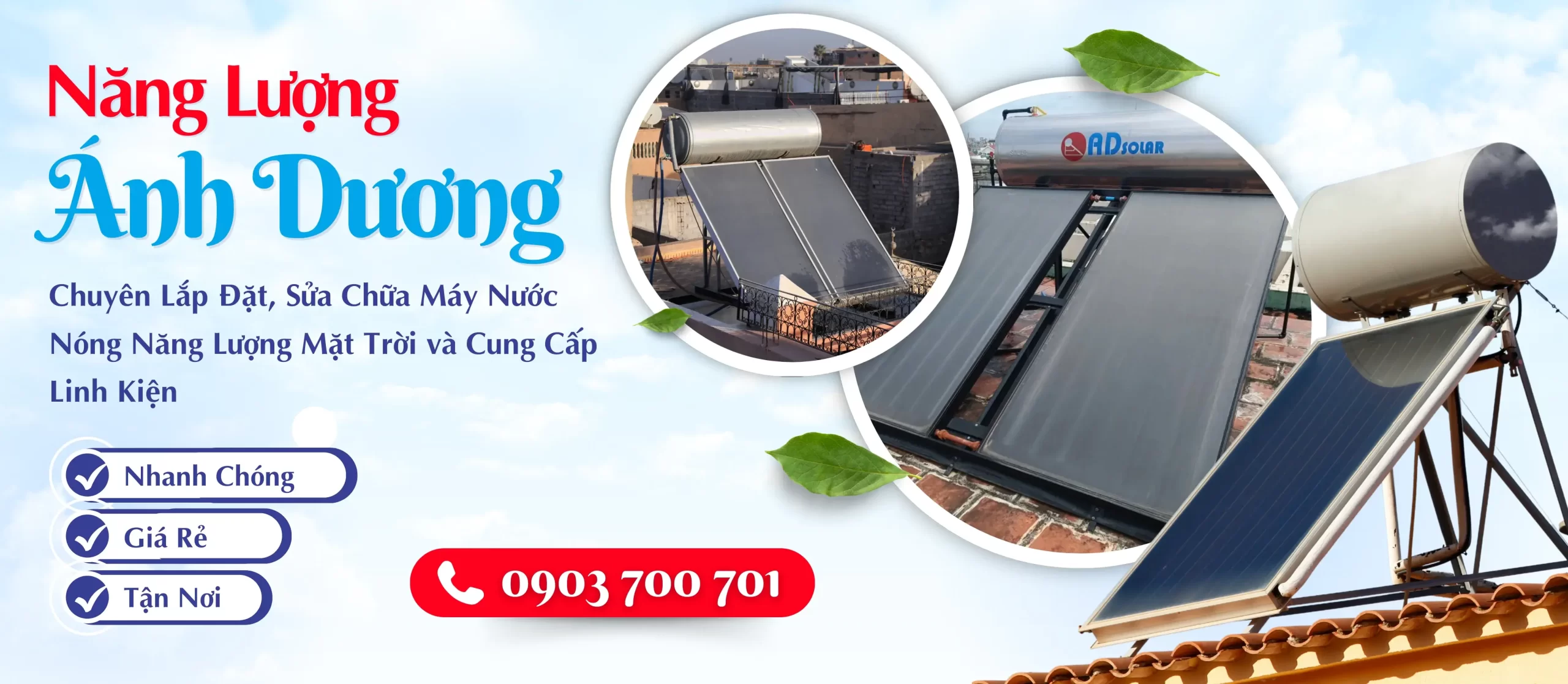 CÔNG TY TNHH MỘT THÀNH VIÊN THƯƠNG MẠI DỊCH VỤ NĂNG LƯỢNG ÁNH DƯƠNG (ÁNH DƯƠNG) là chuyên gia giải quyết triệt để những vấn đề này. Chúng tôi cung cấp dịch vụ lắp đặt máy nước nóng năng lượng mặt trời và dịch vụ sửa nước nóng năng lượng mặt trời chuyên nghiệp, cam kết chất lượng, giúp nguồn nước nóng của gia đình bạn luôn ổn định và an toàn.