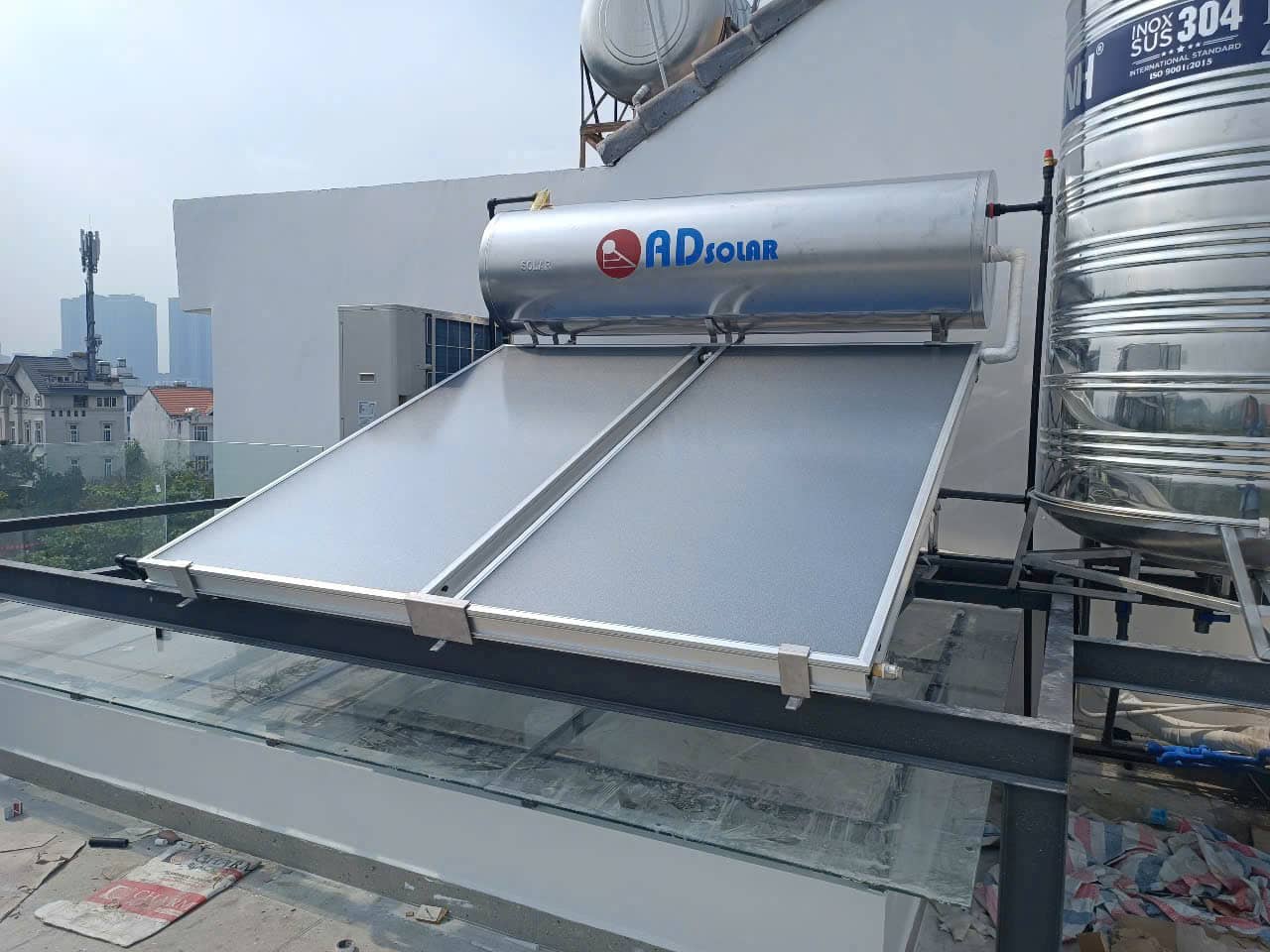 Kiểm tra độ nghiêng: Đảm bảo khung có độ dốc chuẩn (thường 15-30 độ) về hướng Nam để tối ưu hóa thu nhiệt và thoát nước mưa.